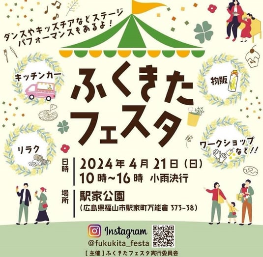 2024/03/10 イベント出店のお知らせ いつも福山ベースのホームページをご覧いただきまして有難うございます。イベント出店第2弾が決定しましたのでお知らせします。 参加イベントvol.2 ふくきたフェスタ 日時:4月21日(日)10時~16時 場所:駅家公園 内容:福山市北部の地域活性化を目的とした今季から始まる新しいイベント。ステージ演出やパフォーマンス、ハンドメイドマーケットやキッチンカーの出店など地域を盛り上げるお店が集合します。 出店:タイル工作など子供も楽しめる企画を実施します。 ご来場お待ちしております。 tagPlaceholderカテゴリ: